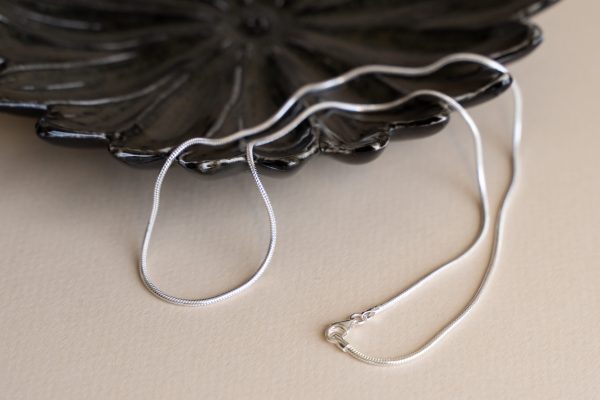 This rounded link chain has a lobster clasp and soldered jump ring. It can be worn with any pendant alone, or with the addition of a soldered jump ring.