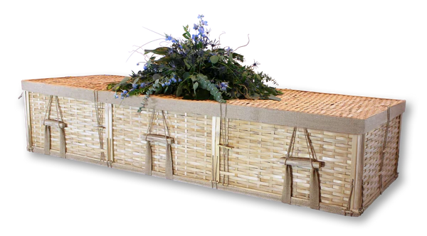 Each Four-Point Bamboo Casket includes an absorbent quilt in the base and a full cotton lining, with a matching pillow. Six handles across the sides allow for easy transportation, and the caskets are weight-tested to 350lbs.
