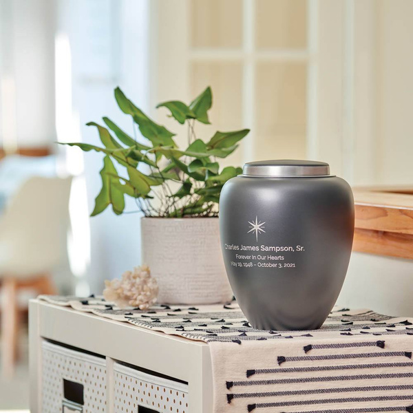 A full-size urn made of Aluminum with a rich, matte colored finish.