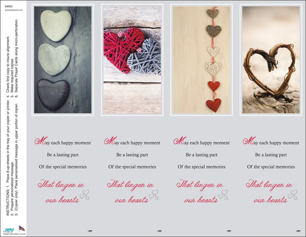 Heart Assortment Bookmarks PleaseRegister/Loginto see the price Registration Form User name : Email : Password : Confirm Password : Already Registered ! Click Here to login. Login Form User name : Password : Heart Assortment Bookmarks 4-up Microperf Heart Assortment Bookmarks quantity Add to cart SKU: P-94565 Category: Bookmarks Description Description 4-up Microperf Bookmarks. 500 bookmarks per pack. Related products Calla Lily BookmarkAdd to cart Praying Hands BookmarkAdd to cart Peaceful Paths BookmarkAdd to cart Hail Mary BookmarksAdd to cart