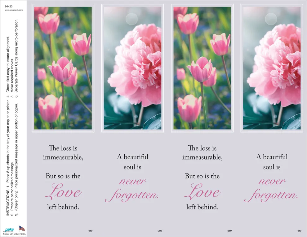 Pink Floral Bookmarks PleaseRegister/Loginto see the price Registration Form User name : Email : Password : Confirm Password : Already Registered ! Click Here to login. Login Form User name : Password : Pink Floral Bookmarks Bookmarks 4-up Microperf Bookmarks Pink Floral Bookmarks quantity Add to cart SKU: P-94423 Category: Bookmarks Description Description 4-up Microperf Bookmarks. 500 bookmarks per pack. Related products Nature Assortment BookmarksAdd to cart Cherished Rose BookmarkAdd to cart Peace be with you BookmarksAdd to cart Wheat BookmarkAdd to cart